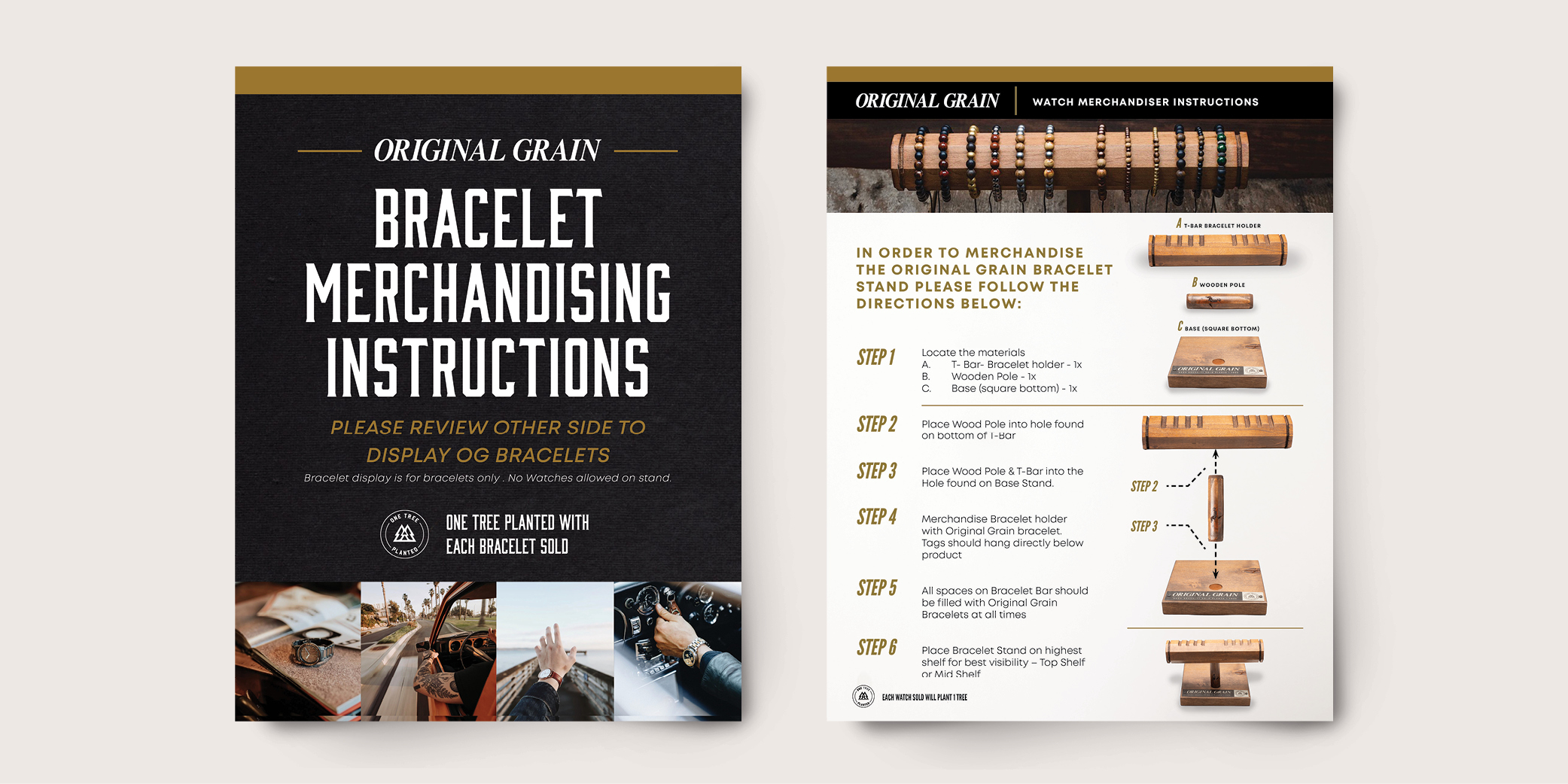 Original Grain Bracelet Instructions: Developed a comprehensive retail merchandising guide for Original Grain Watches (2018), designing a visually engaging bracelet display system that equipped retail teams with clear direction for setup, product placement, and brand storytelling at point-of-sale.