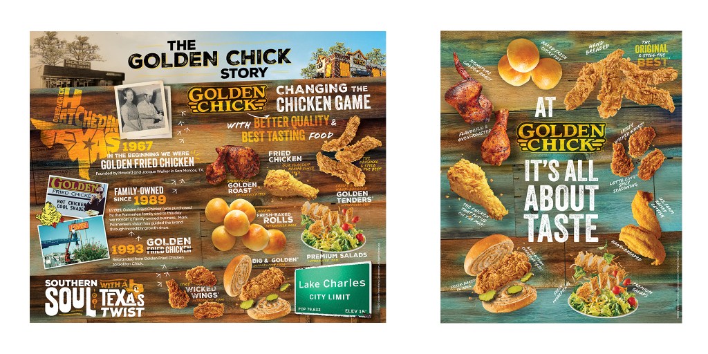 Golden Chick: Designed large-scale history and USP murals for Golden Chick, transforming brand storytelling into immersive visual experiences that celebrate heritage while highlighting key differentiators to engage guests in-store.